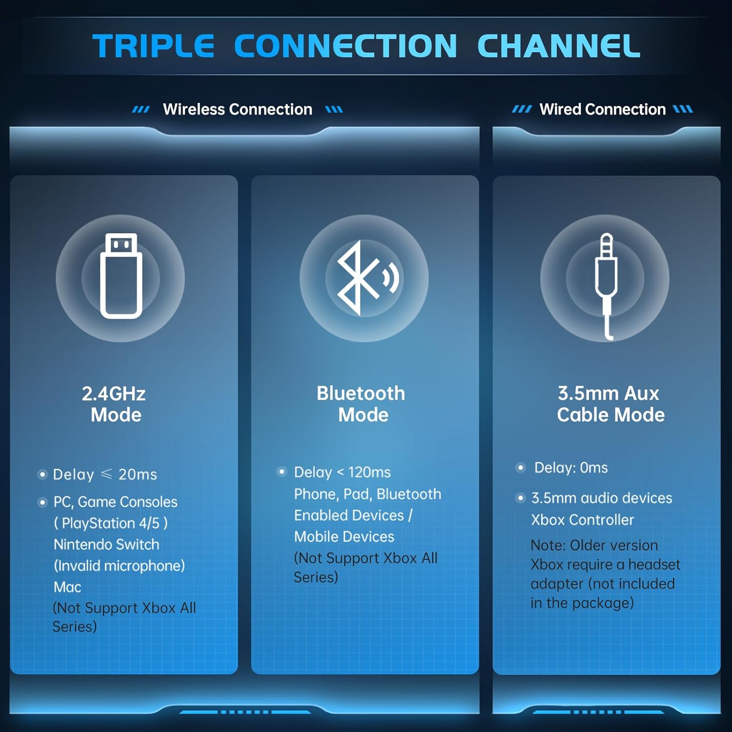 2.4GHz Wireless Gaming Headset for PC, PS4, PS5, Mac, Nintendo Switch, Bluetooth 5.2 Gaming Headphones with Noise Canceling Microphone, Stereo Sound, ONLY 3.5mm Wired Mode for Xbox Series-Black