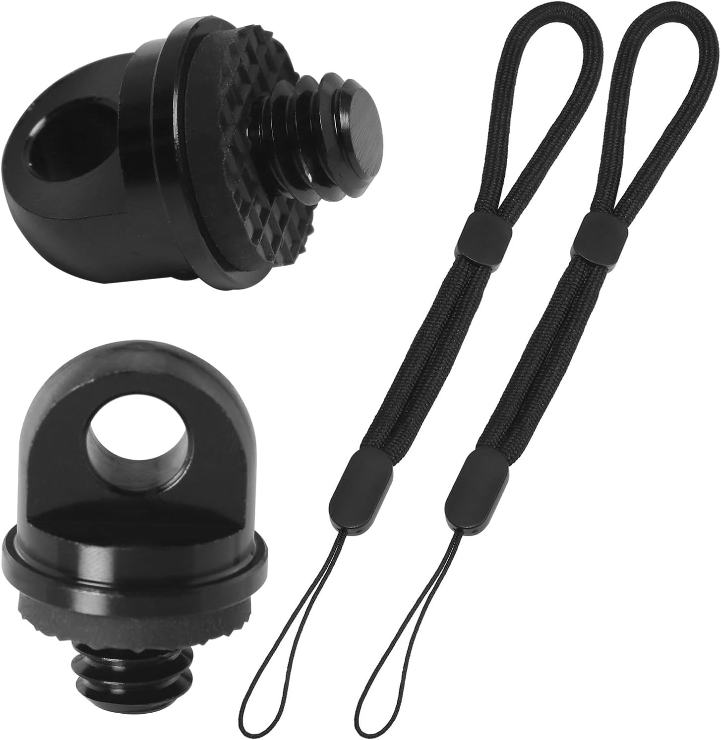 2PCS 1/4 Camera Shoulder Strap Wrist Strap Lanyard with C Clip for Photography Studio Camera Selfie Stick Tail Hand Twist Screw Metal Accessories and Adjustable Round Ropes Black
