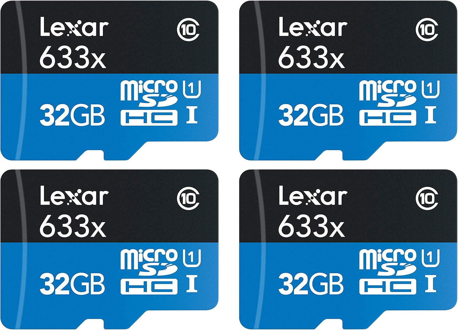 Lexar Pack of 4 High-Performance 633x 32GB (128GB Total) MicroSDHC UHS-I Memory Cards with SD Adapter LSDMI32GBBNL633A Bundle w/Deco Gear SD Reader & Storage Case + Microfiber Cloth & Accessories