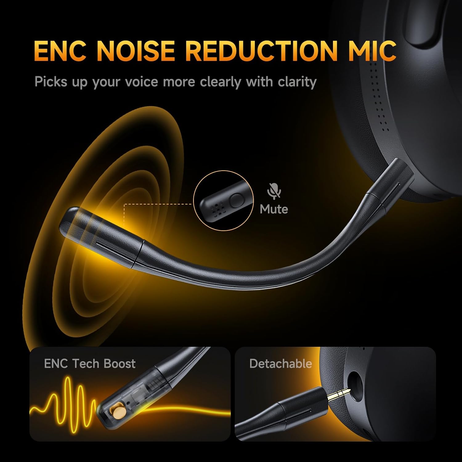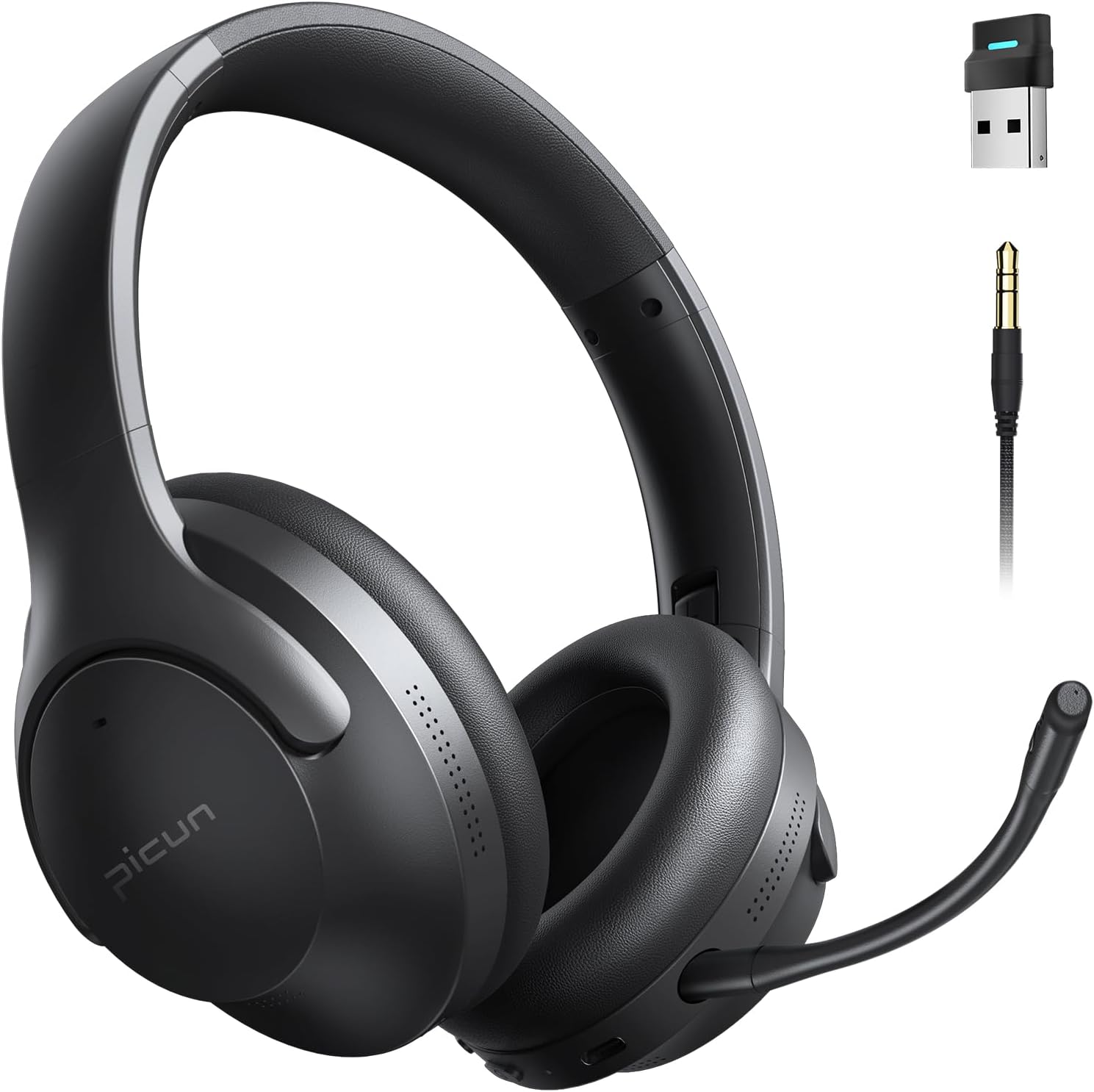 Picun Wireless Gaming Headsets with Active Noise Cancelling, 2.4Ghz/Bluetooth Over Ear Headphones with Detachable Boom Mic, 3D Surround Sound, 50H Playtime for PC, PS5/PS4, laptop, Cellphones, Black